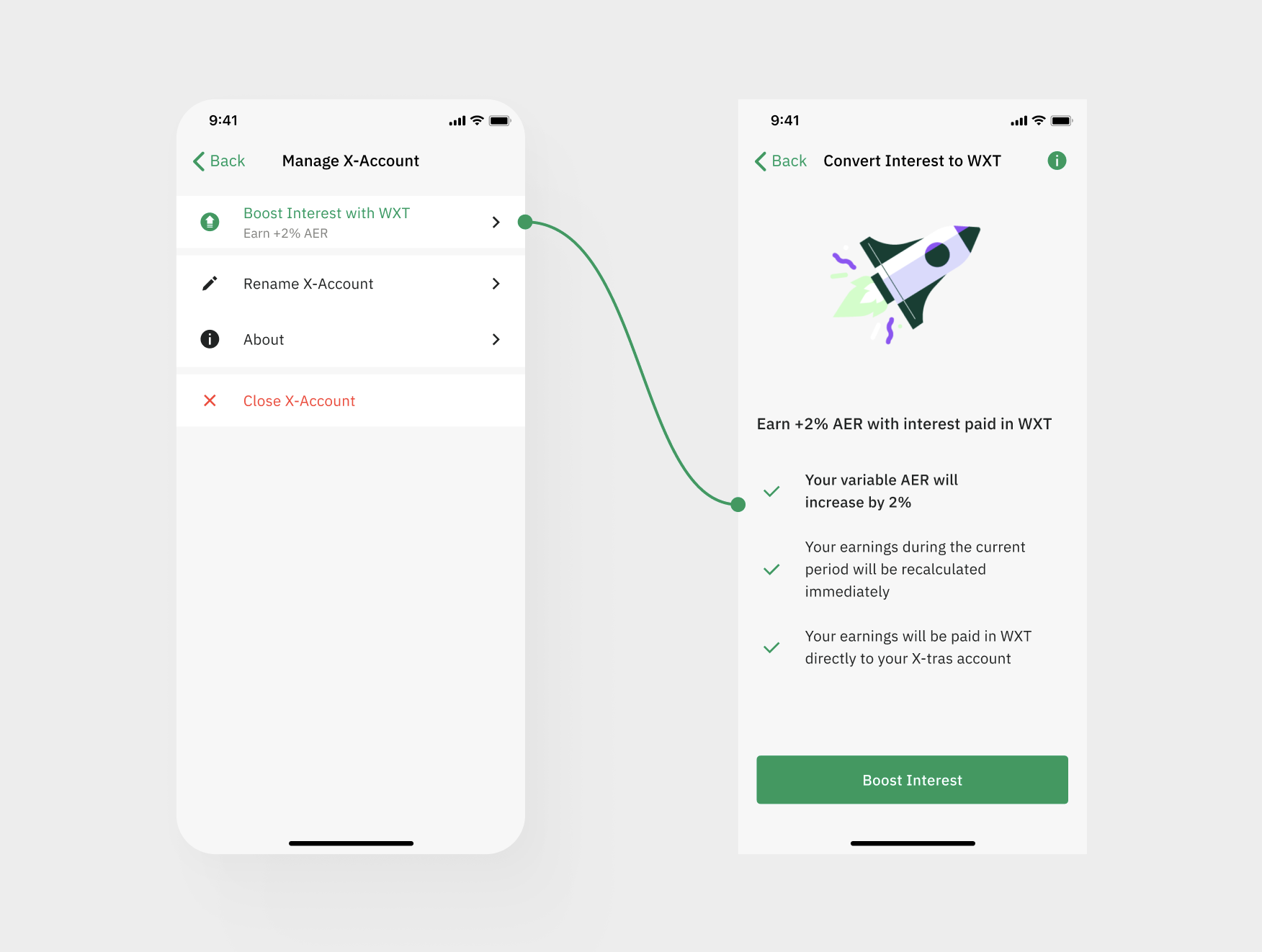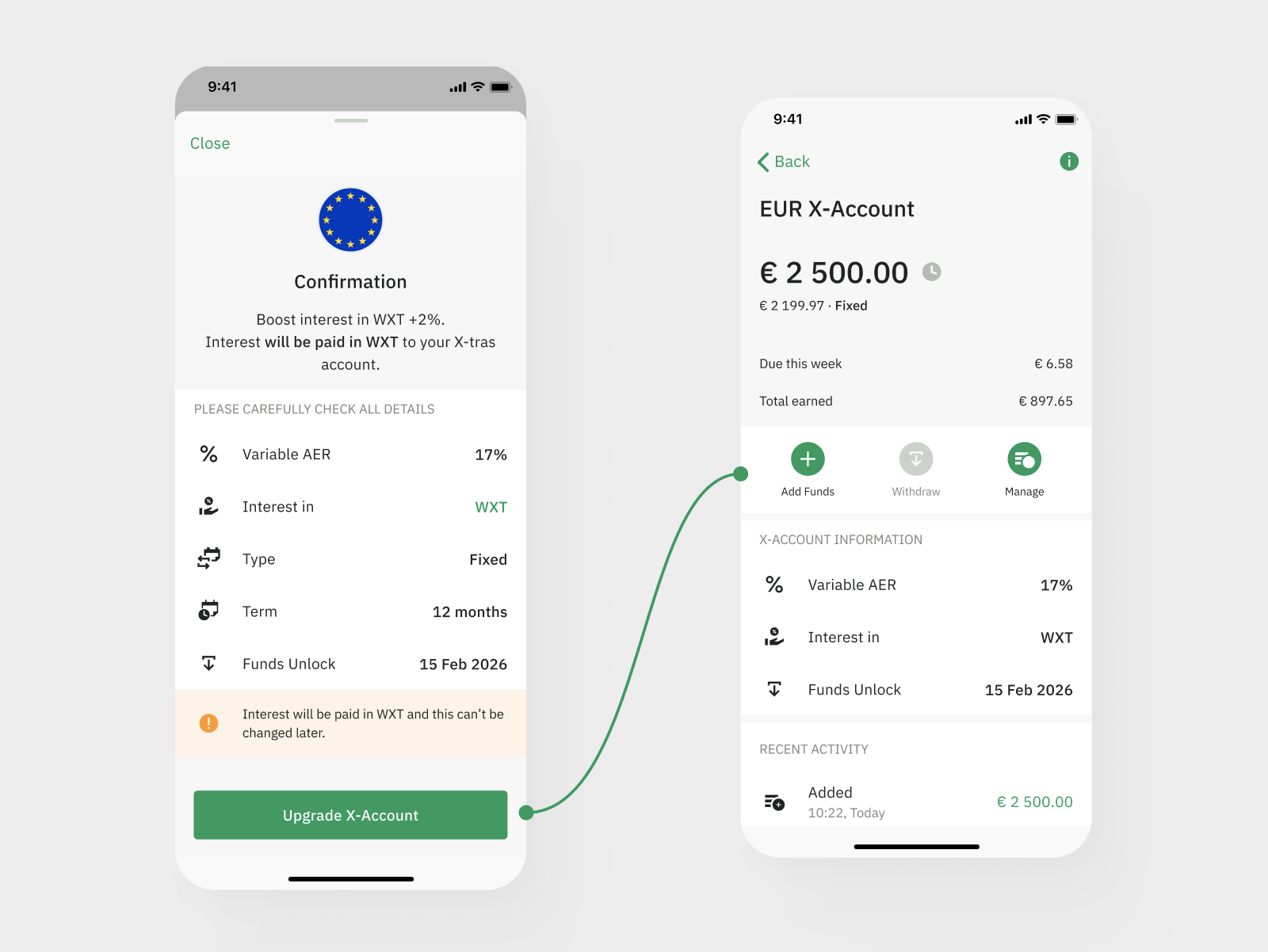 Please note that if you choose to receive interest in WXT, you won't be able to switch back to interest in kind. However, you can open another X-Account on the same currency and toggle 'interest in kind', or simply close the existing X-Account and open a new one.