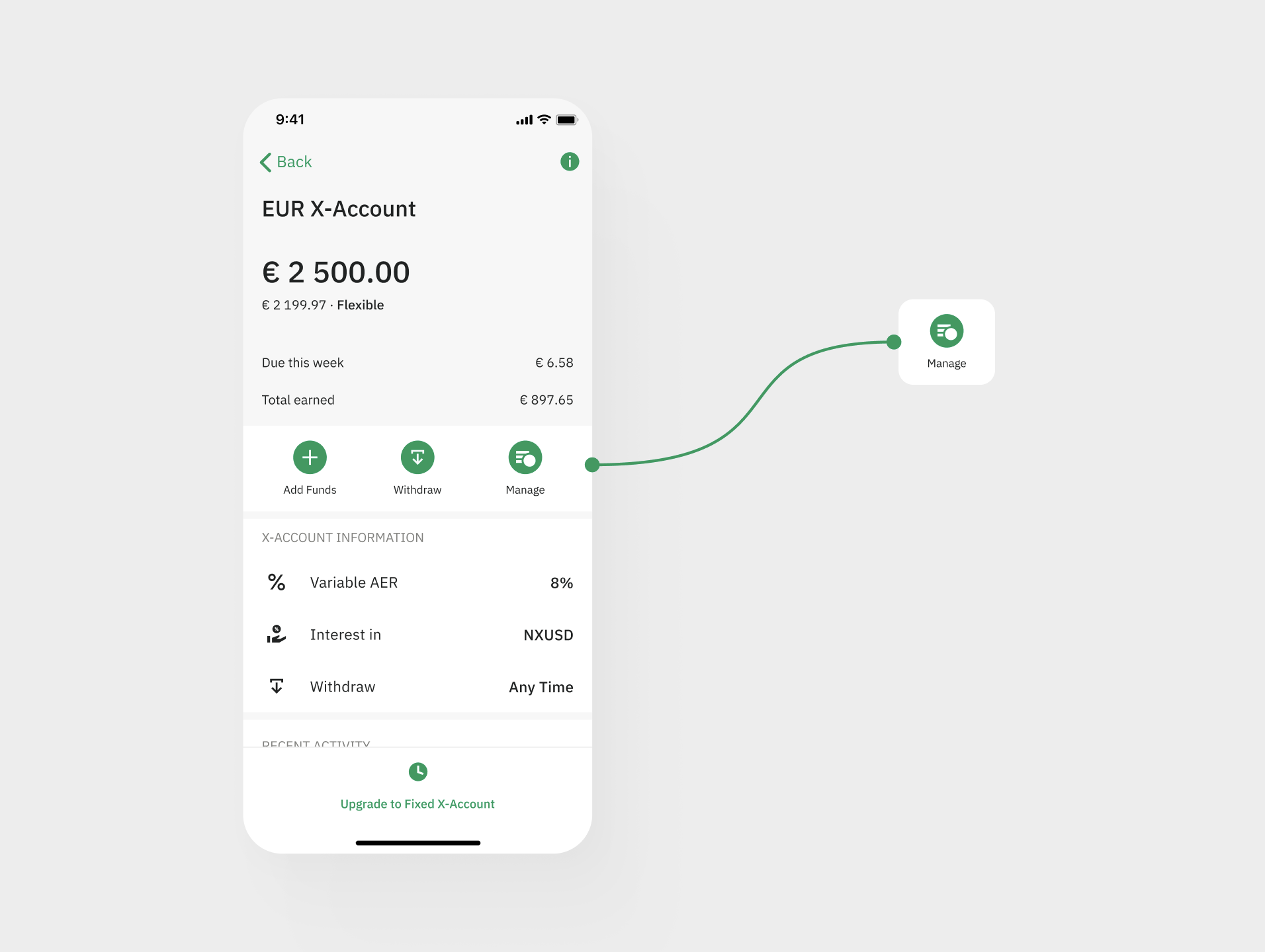2) Or go to Manage → ‘Upgrade to Fixed X-Account’