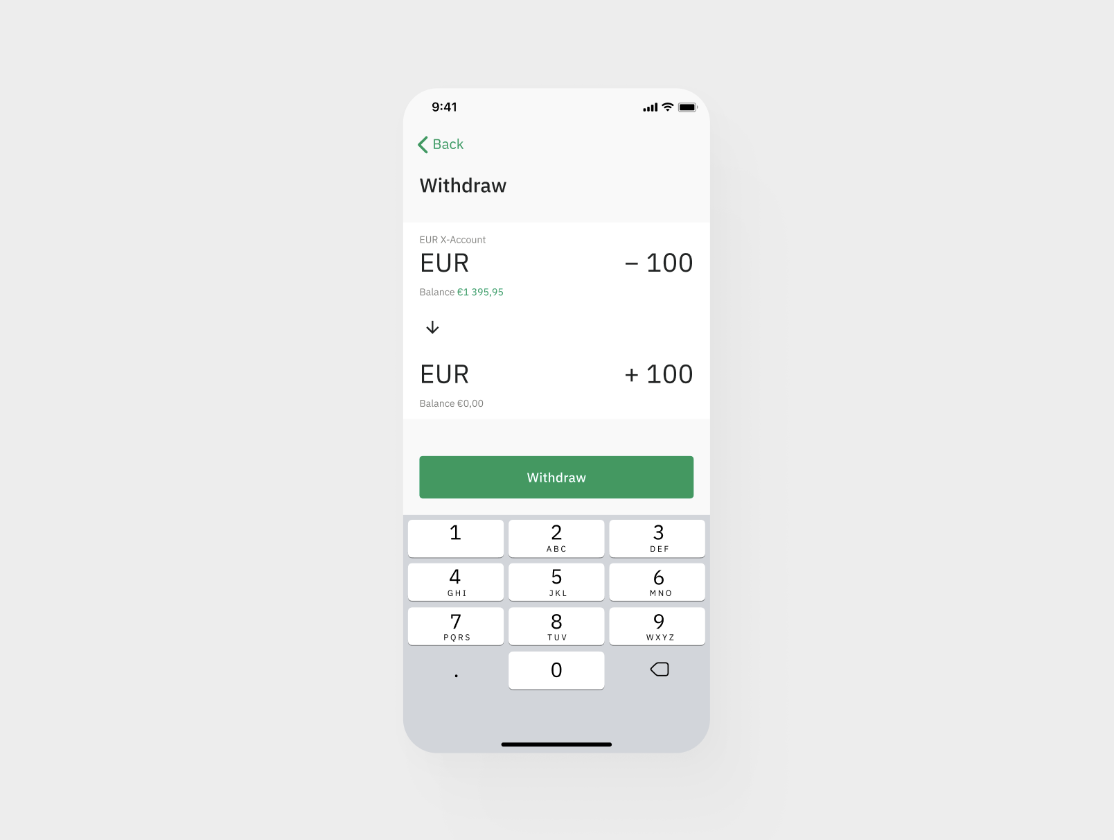 - Open the account, click "Withdraw", and choose the amount you wish to transfer to your regular currency account.